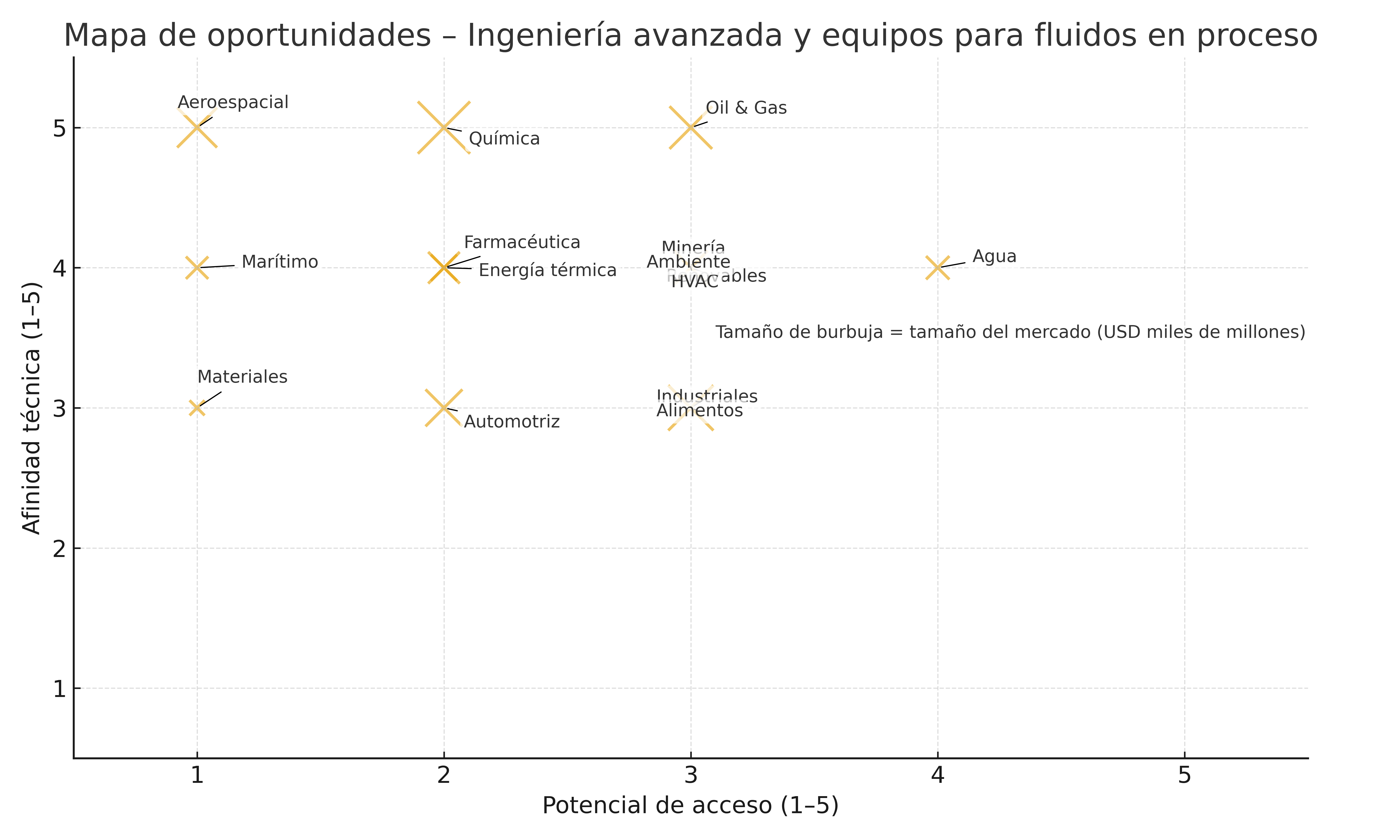 Aeroespacial, Automotriz, Farmacéutico, Marítimo y Materiales Avanzados. Requieren alianzas o certificaciones, pero ofrecen alto valor técnico y reputacional.