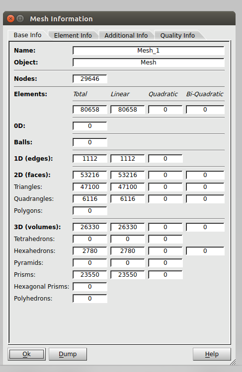 La geometría solida está dividida en nodos y elementos usando el generador de mallas del programa Salome-Meca. El modelo contiene 29646 nodos y 80658 elementos. (Ver figura 5.)