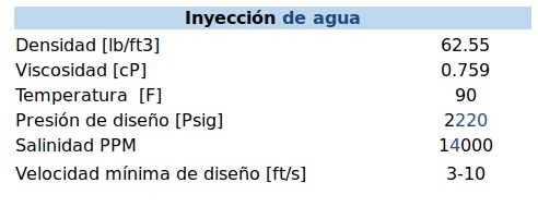 El factor utilizado para el material de la tubería de agua de inyección fue de 3, lo cual es muy cercano a lo obtenido de este modo.