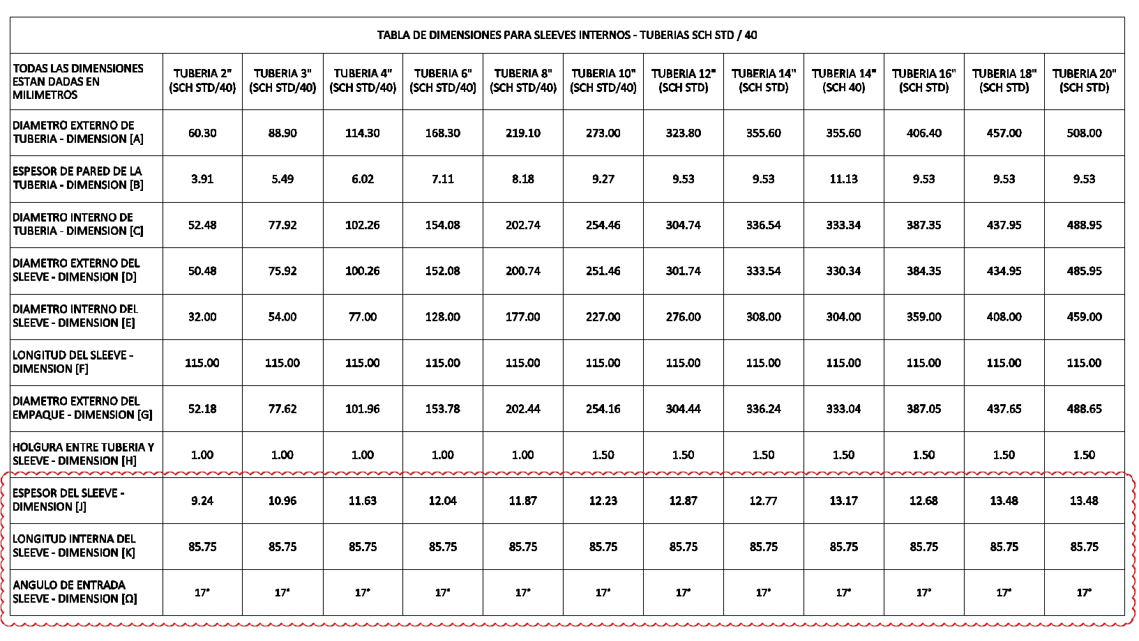 Se realizó la verificación de la capacidad mecánica de Sleeves de 3»,6»,10» y 16» usados en tuberías de SCH STD y de 3», 8» y 12» usados en tuberías SCH 80.